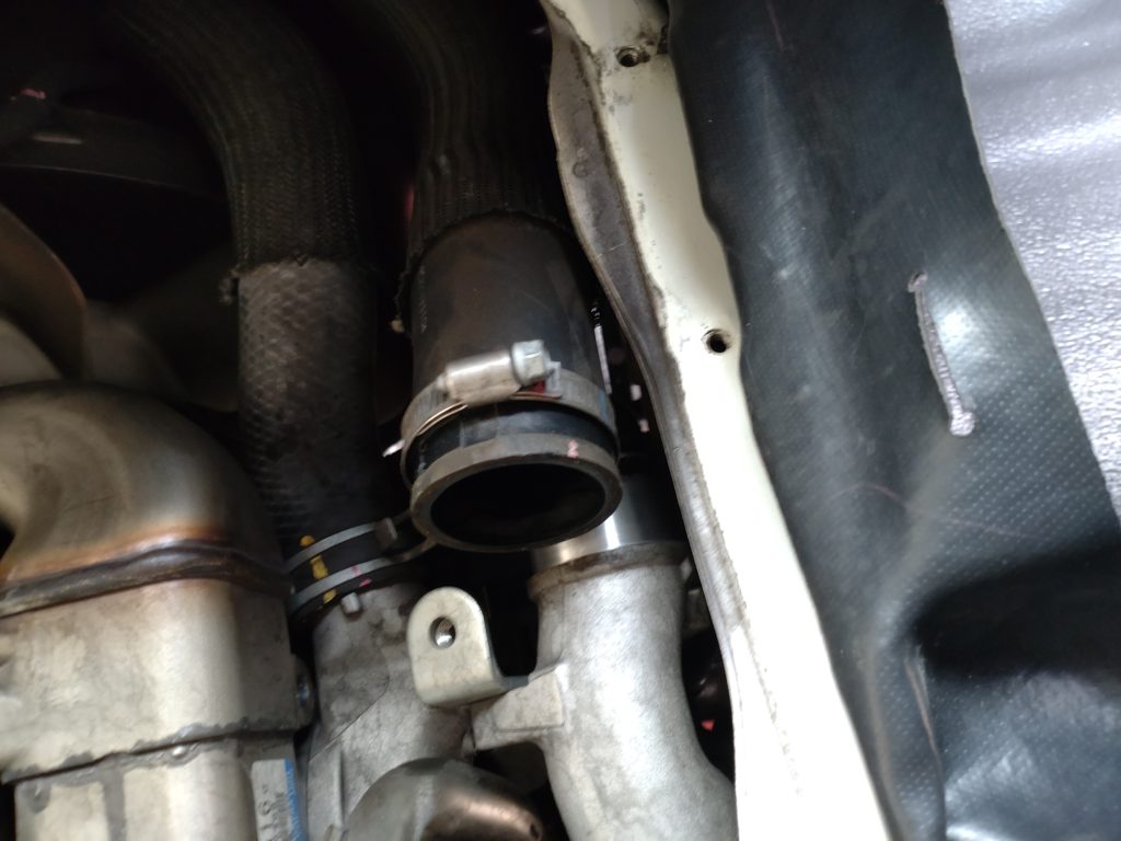 その前に邪魔になりそうなコンプレッサーからインタークーラーに繋がるインダクションパイプを分離します。